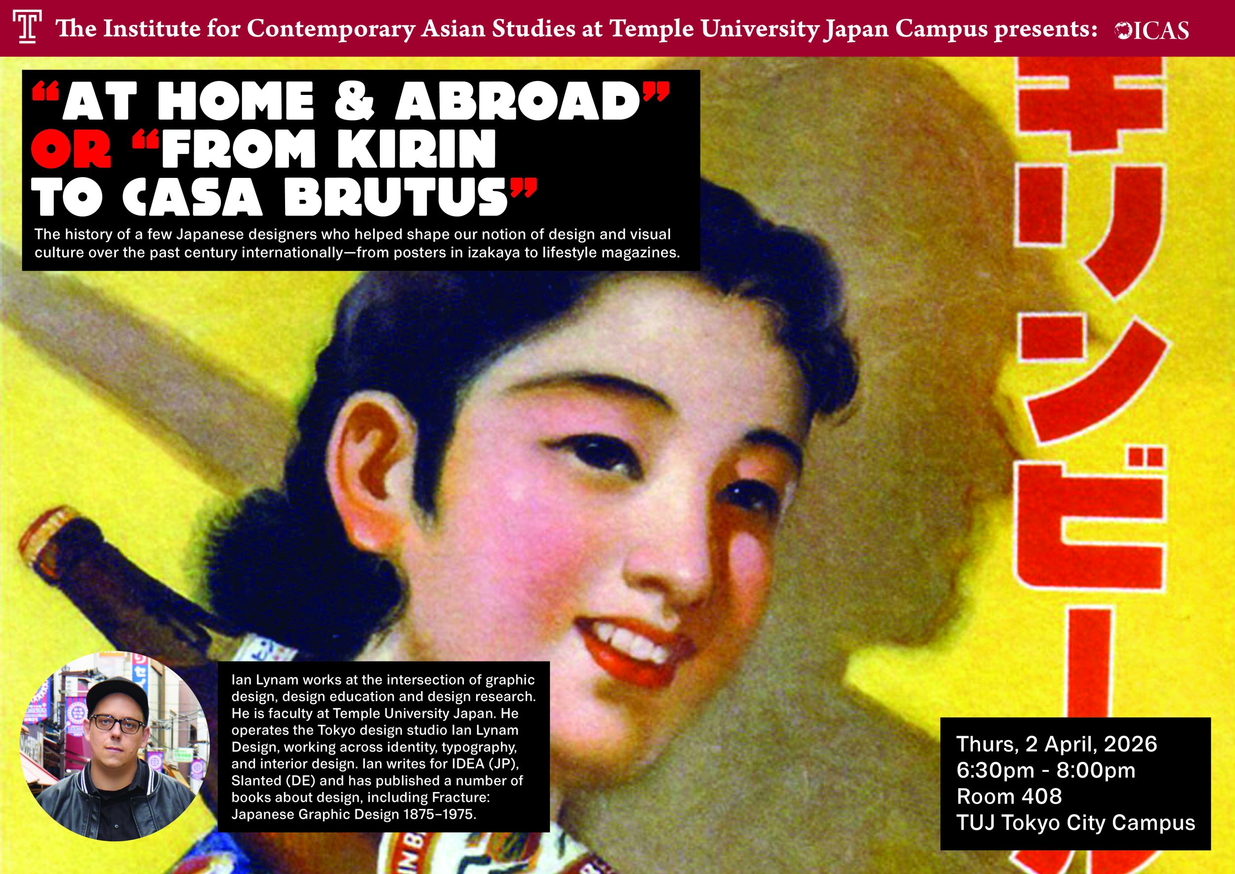 I will be giving a public presentation at Temple University Japan for the Institute of Contemporary Asian Studies on April 2nd.