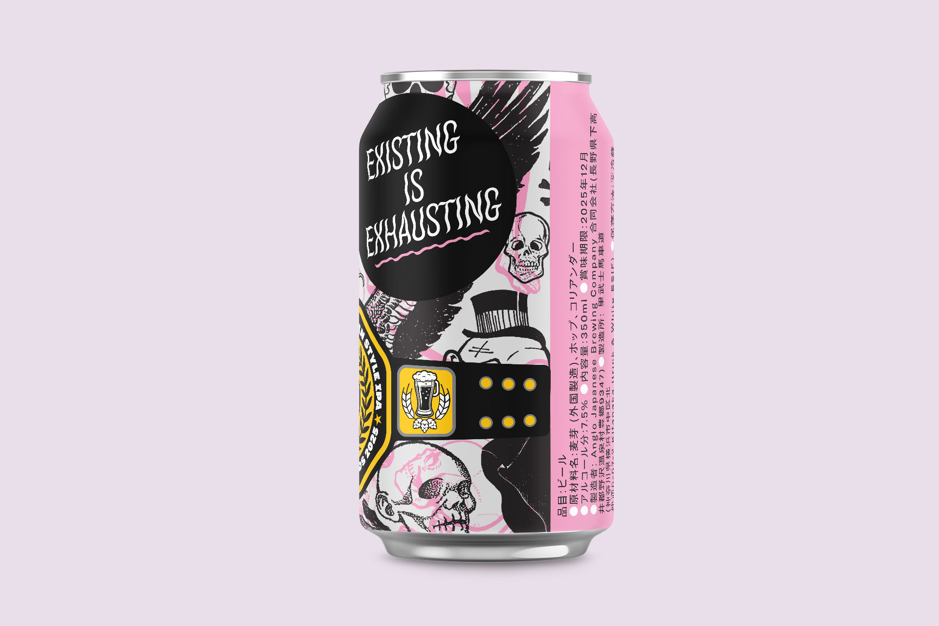 We designed the packaging for Existing is Exhausting, a clear West Coast IPA that is the result of a collaboration between Libushi Bashamichi: Yokohama’s finest craft brewery; Pintology: Tokyo’s best craft beer bar; and Death by Roll-Up, professional wrestler Chris Brookes‘ hybrid production company, event organizer and apparel brand.